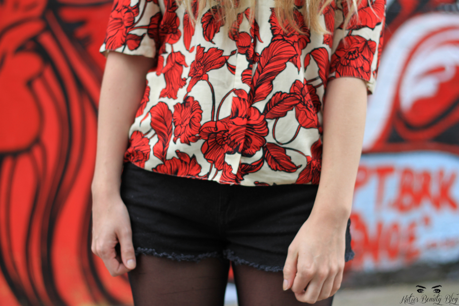 I wore a bright floral print boxy t-shirt from Primark which I picked up for £3 – bargain! I’ve been really trying to wear more colour recently as I always tend to lean towards black as a safety colour. I teamed this with black shorts from Primark (I find Primark really good for shorts, comfy and fit well), tights and my favourite boots from New Look.